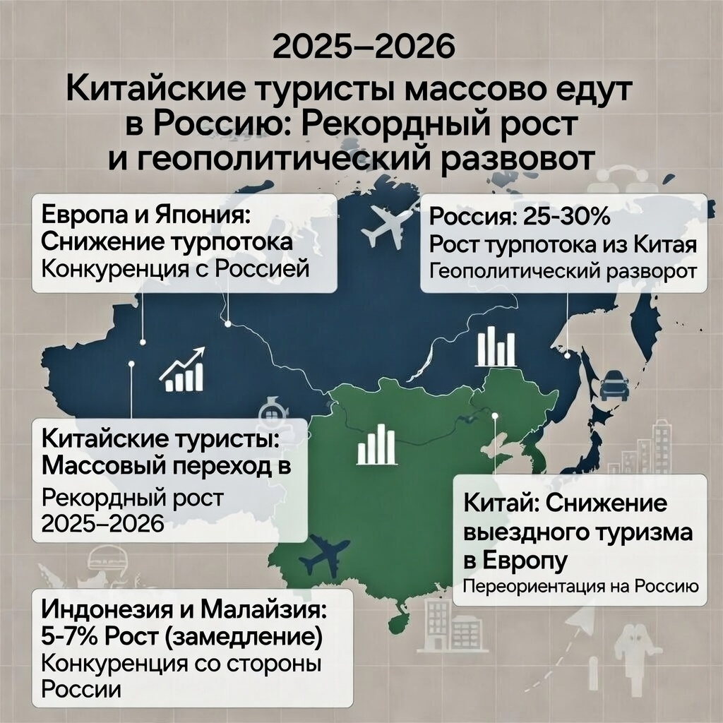 Итог: цифры 2025–2026 показывают не просто рост — они демонстрируют, как внешняя политика и своевременные решения могут радикально изменить туристический ландшафт страны. Россия получила шанс превратить китайского туриста из «лидера по объёму» в надёжный, растущий и высокомаржинальный сегмент на десятилетия. Главное — не упустить этот момент.